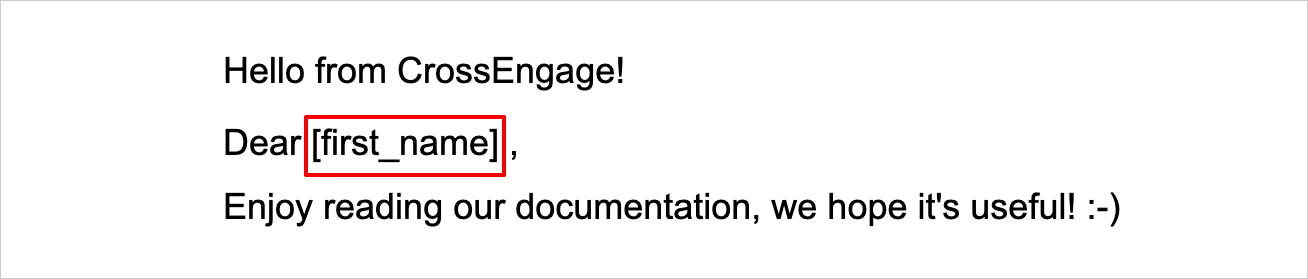 For example, to include your customer’s first name in your SendGrid email, you would place the`[first_name]` standard substitution tag where you want your customer’s first name to appear in the content of the message. When your customer receives the campaign, they will see their own name where the merge tag was placed.
