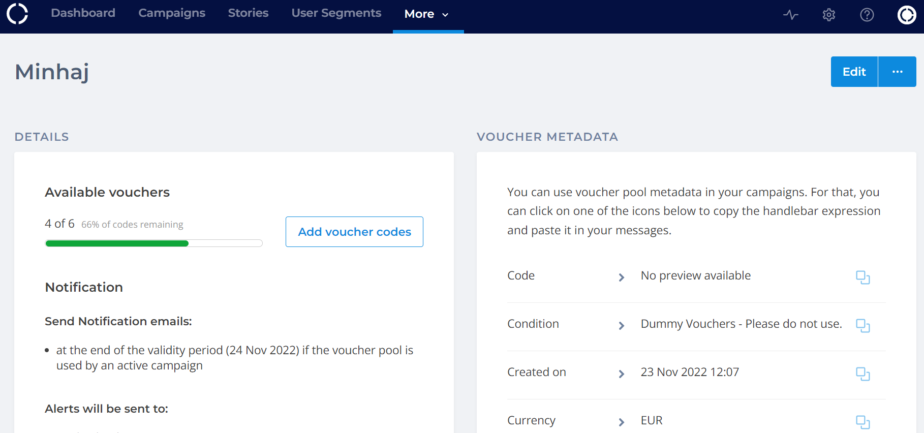 For more details on adding Vouchers, please go to [Voucher Helper Function](https://documentation.crossengage.io/data-and-engagement-platform/messages/personalization/misc.-helper-functions/voucher-helper-function).