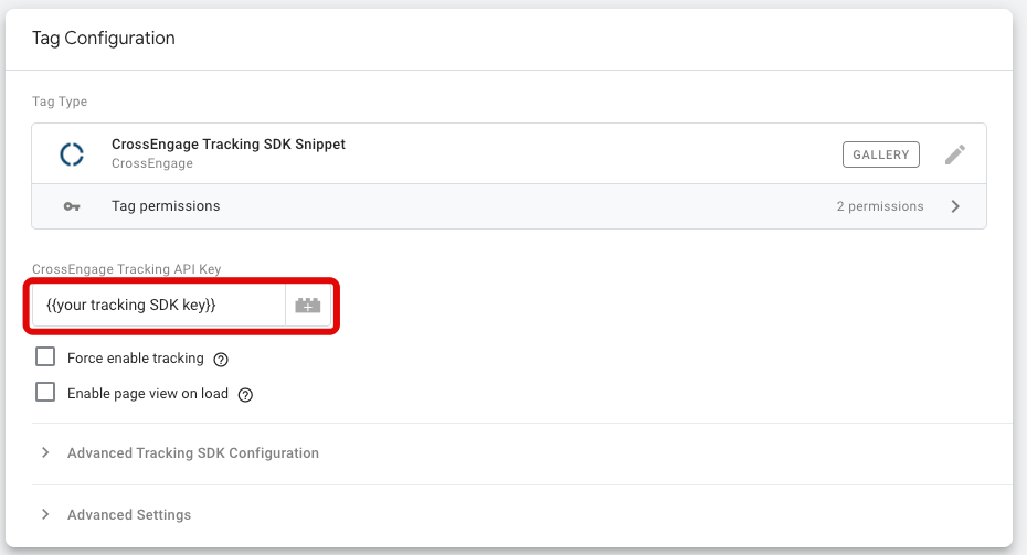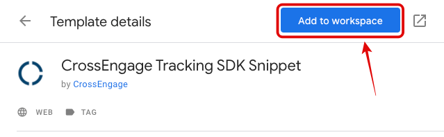 Once you have added the SDK template in your GTM workspace, you can easily set up a tag that makes use of the SDK template, enabling the CrossEngage tracking functionality.
